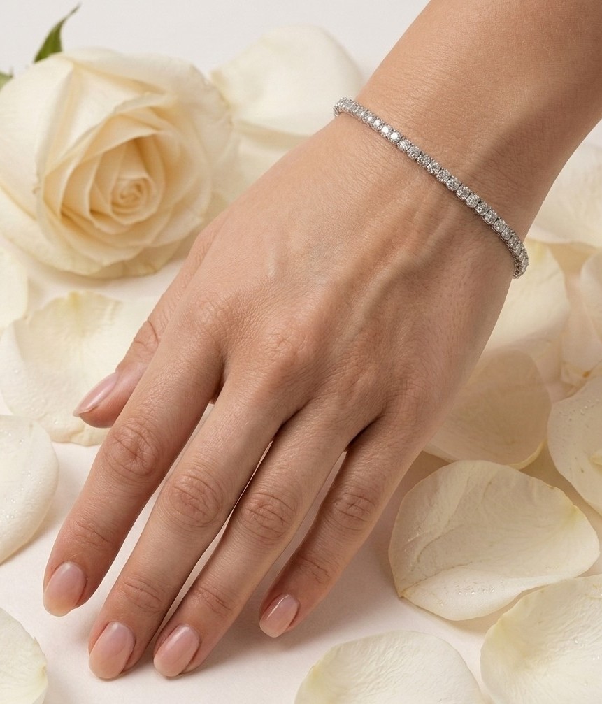 Tennis Bracelet 2mm. Signature Diamond Simulant, Brilliant round, prongs set – Sterling Silver Rhodium Plated, L=6.5″