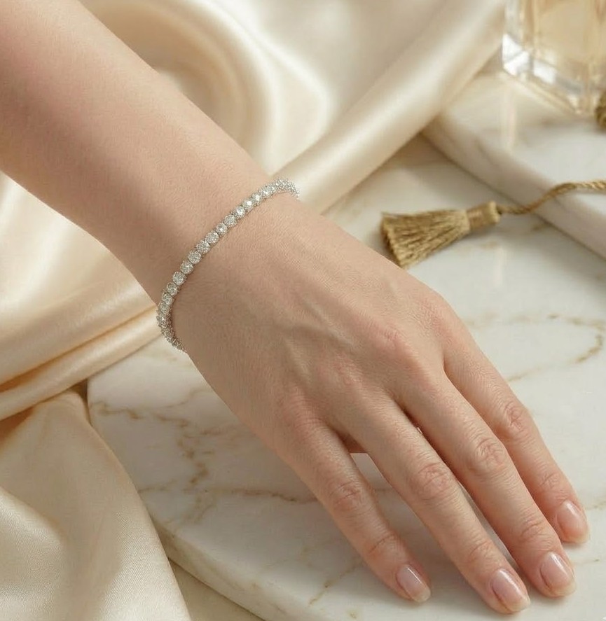 3mm Signature Diamond Simulant, Brilliant round, prongs set – Sterling Silver Rhodium Plated, L=7″