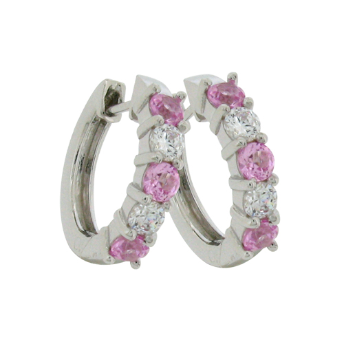 Earrings 0.18ct (3mm) Lab-Created Diamond Simulants Brilliant cut x 5, prongs set, loops, Sterling Silver Rhodium Plated.