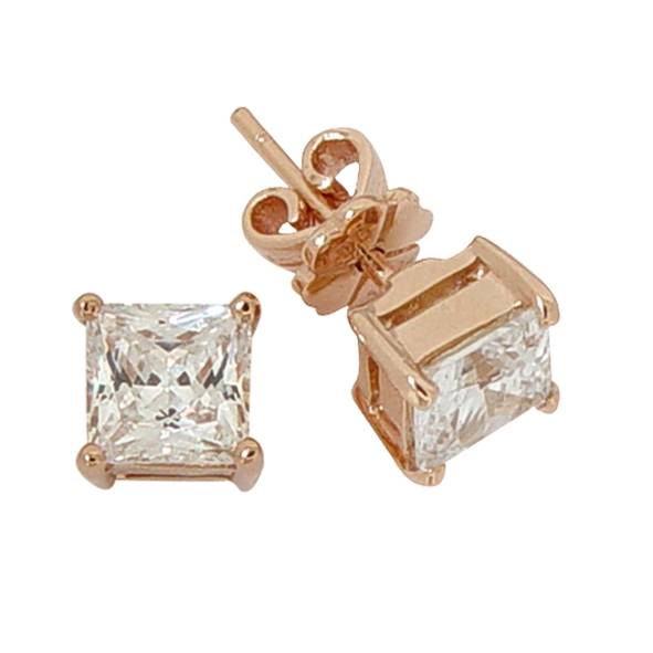 [woocommerce_currency_switcher_drop_down_box]Princess cut (6x6mm) Diamond Simulant, Solitaire, Stud Earring