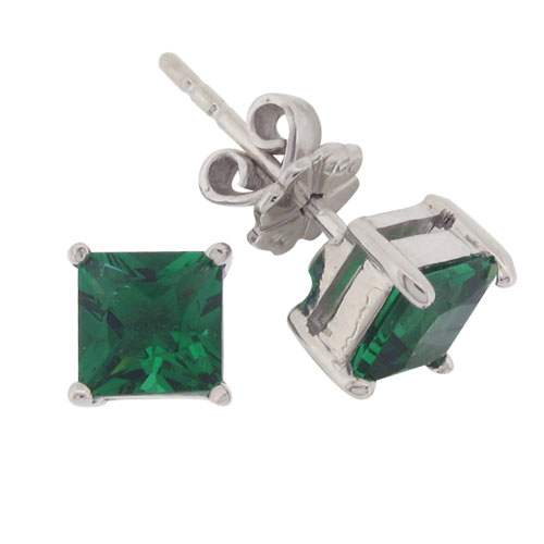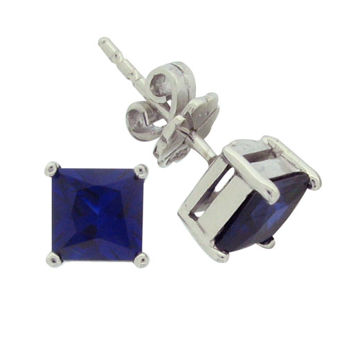 Earring 2ct (5.5×5.5mm) Lab-Created Diamond Simulants princess cut, prongs set, stud, Sterling Silver Rhodium Plated