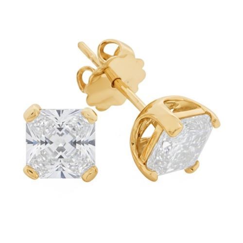 Asscher cut (6.5×6.5mm), double prongs set, stud, Sterling Silver Rhodium Plated