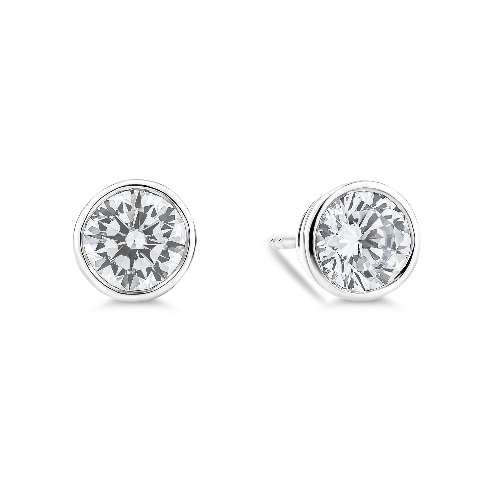 Earring 0.5ct (4.25mm) Lab-Created Diamond Simulants, Brilliant cut, bezel set, Sterling Silver Rhodium Plated