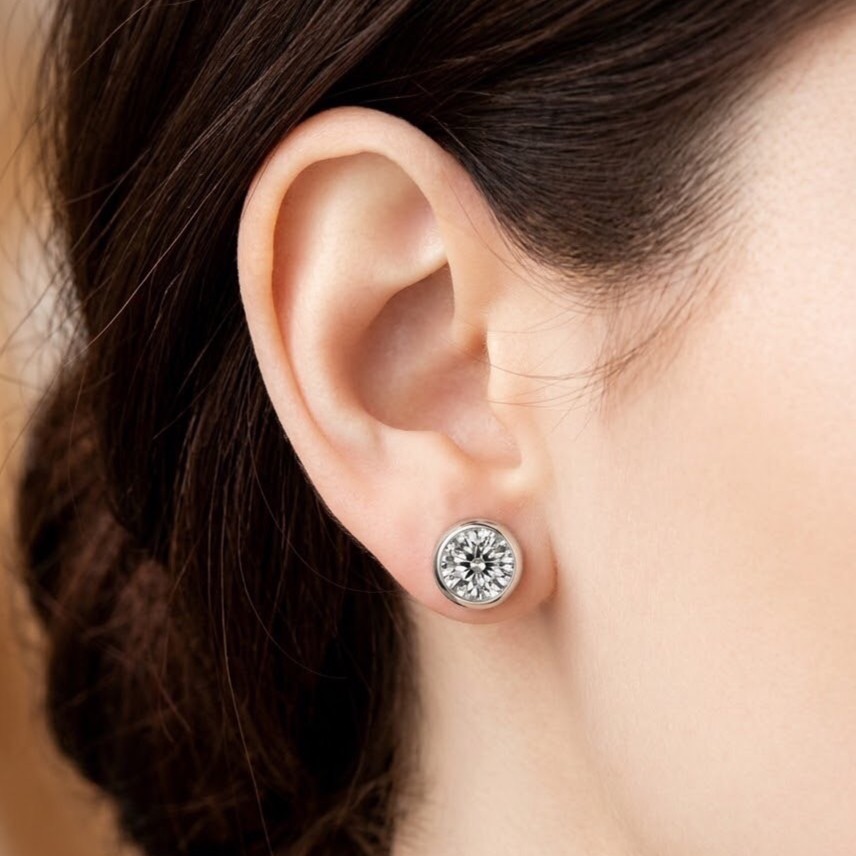 5mm Signature Diamond Simulant, Brilliant round cut, Bezel set, Stud -Sterling Silver Rhodium Plated