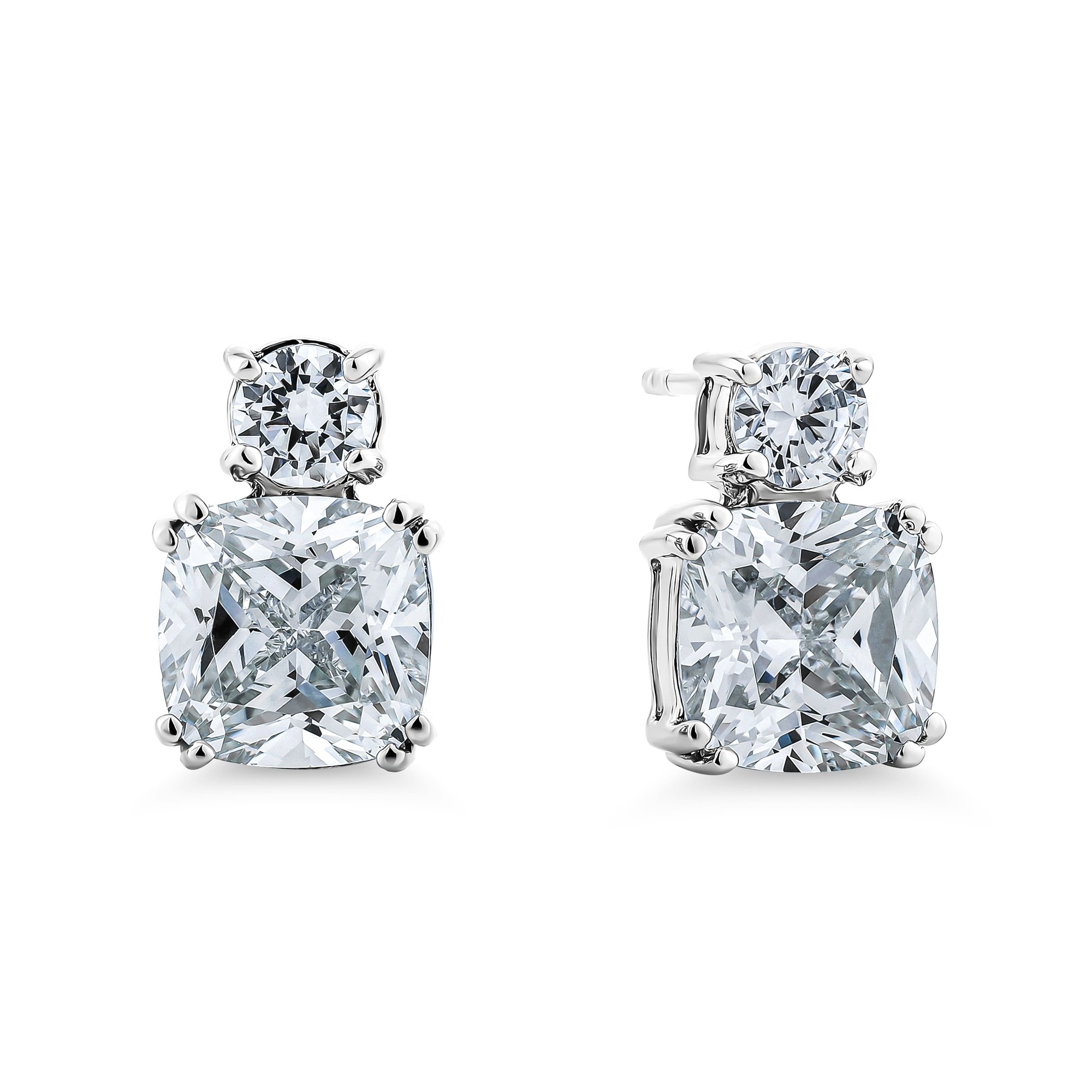 [woocommerce_currency_switcher_drop_down_box]5ct (8x8mm) Cushion and 0.5ct (4.25mm) Brilliant cut Diamond Simulant earrings, Sterling Silver Rhodium Plated