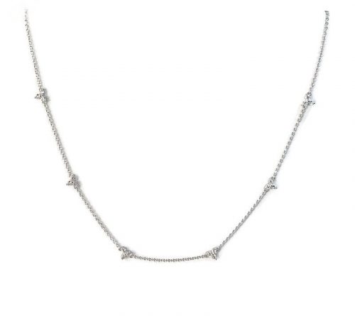 Necklace with 6 pcs of Trilogy stone set with 2 mmx3pcs , Brilliant Lab-Created Diamond Simulants, Sterling Silver Rhodium Plated.