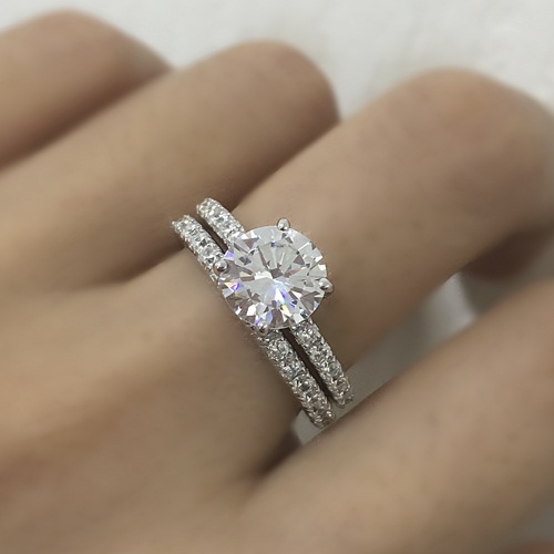 Ring 3ct (7.75 mm) Lab-Created Diamond Simulants, Brilliant cut, prong set, 1.75mm Brilliant Cut on half band prong sets ,Sterling Silver Rhodium Plate